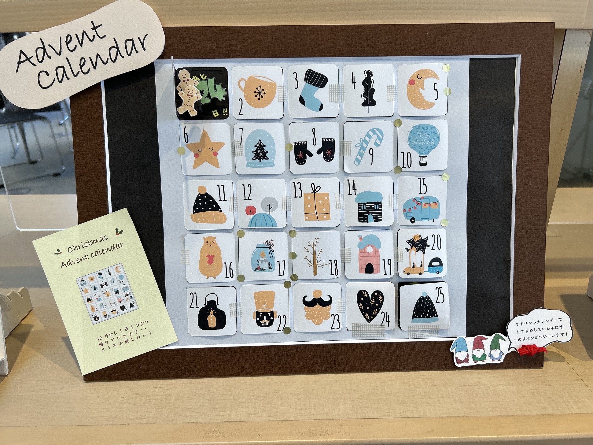 12月からは図書館のアドベントカレンダーを1日1つずつ開けていきます。