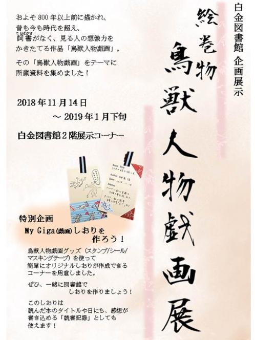 【白金校舎図書館】企画展示 絵巻物「鳥獣人物戯画」展 開催中です