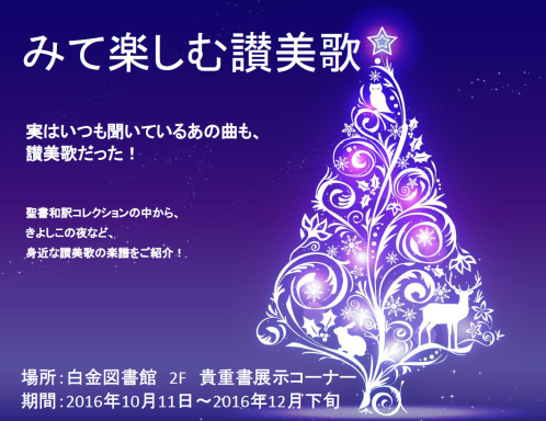 今の季節にぴったりの讃美歌を本学所蔵の貴重資料で鑑賞してみませんか。