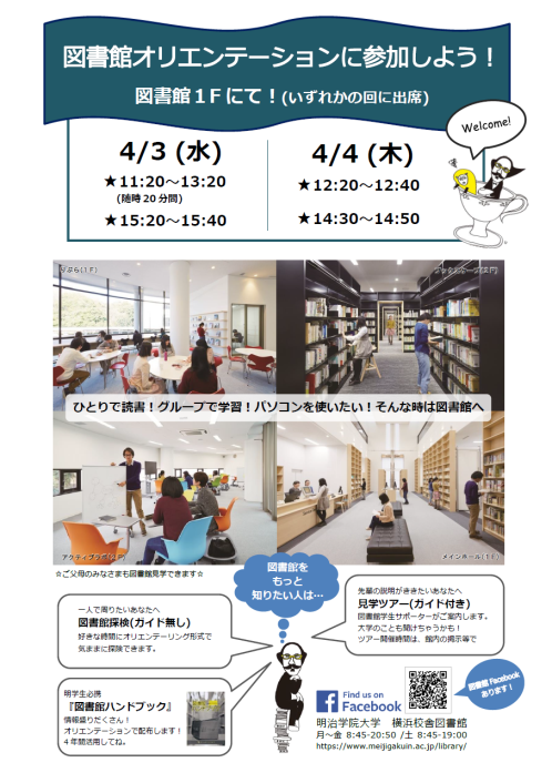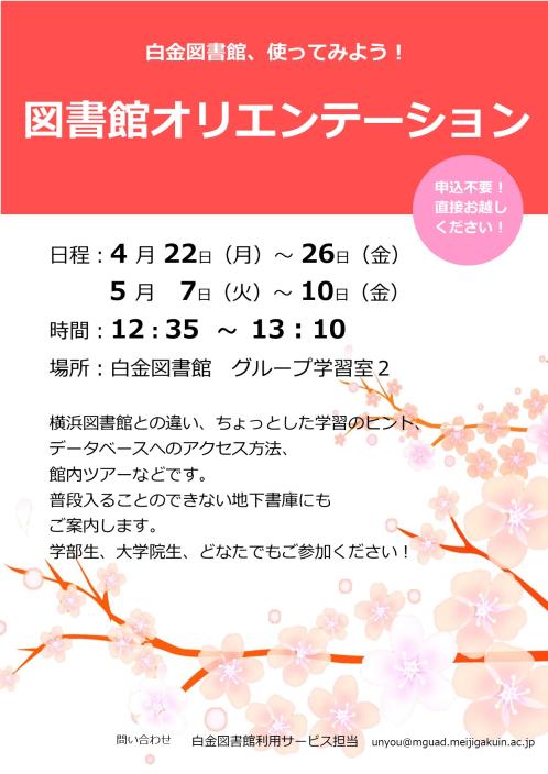 【白金校舎図書館】図書館、使ってみよう!オリエンテーションのお知らせ