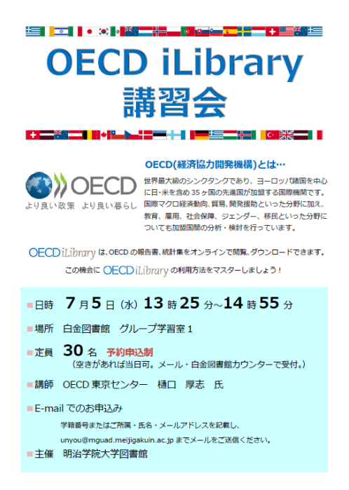 【白金校舎図書館】OECDiLibrary講習会のお知らせ