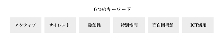 学習の質の違いで学生自身が適切な場所を選べるように「アクティブ」「サイレント」というゾーニングを明確にする。とくにアクティブエリアでは、これからの学びの変化に対応できるように施設・資料・人をつなげるようデザインし、サポートを気軽に受けながら学生が館内を自由に回遊する姿をイメージさせる。またICT環境では最先端の機能と洗練さと遊び心を併せ持ち、ほかにはない明学スタイルを表現する。さらに学習に幅と奥行きを与える様々な仕掛け、たとえば参加型書架、展示による発表、ポスターセッションなどのイベントや、ITカウンター、学習相談デスクなど新たなサポートの展開をめざす。
