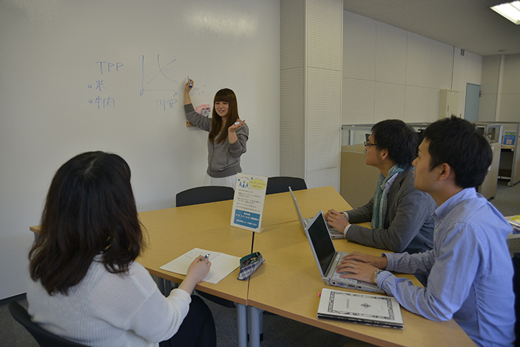 当時学内で唯一ラーニングコモンズと語学学習専用PCが利用できるスペース。図書館のりぶら(アクティブエリア)、AVルーム(語学学習・AV資料の視聴)の代替施設として利用した。