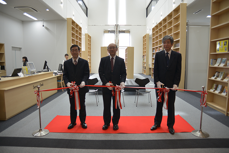 3月25日にオープニングセレモニーを行い、学院長、学長、副学長のテープカットにより横浜図書館の第二章がスタートしました。