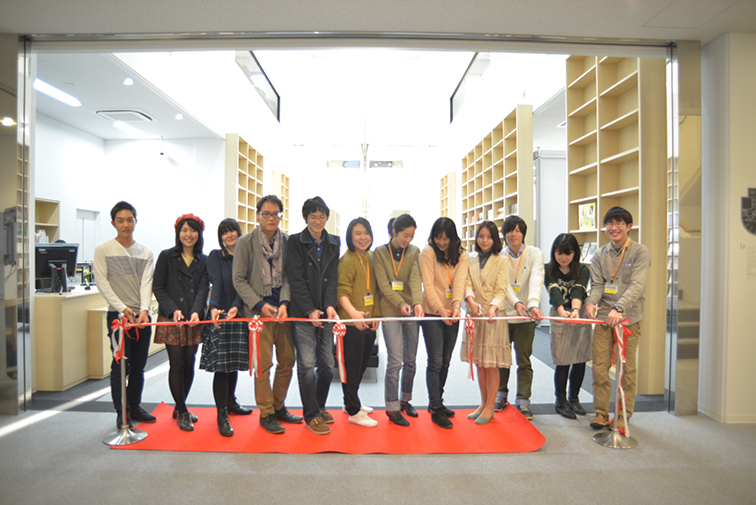 2015年3月23日に仮オープン、3月25日にグランドオープンし、同日オープニングセレモニーを執り行いました。学院関係者、工事関係者等およそ100名にご参加いただき、テープカットや、学生サポーターによる館内案内(見学会)、茶話会を行いました。