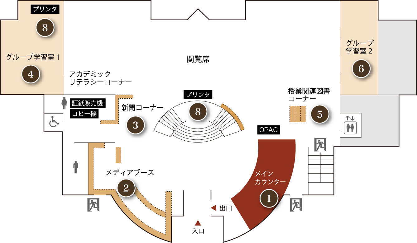 国内や海外の主な新聞の当月分と国内主要四紙(朝日、毎日、読売、日経)の前年度までの縮刷版があります。それ以前のものは閉架書庫にあります。
