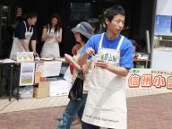 2008年度 戸塚まつりにおきまして、6月1日(日)に小諸市の方々による「信州小諸、観光案内と特産品販売」を行いました。 当日は、小諸市職員や観光協会等より5名の方々に来ていただき、特産品であるイチゴ・アスパラ・手作りスイーツ等々の試食・販売と、小諸市の観光案内をいたしました。 お店は大変好評で、とくにイチゴ・アスパラは予想以上の売れ行きで、あっという間に用意した商品が完売状態になってしまいました。その他スイーツ類も閉店予定時間前には完売してしまい、やむなく閉店時間を早めた程でした。 多くの方々にご来場いただき、ありがとうございました。