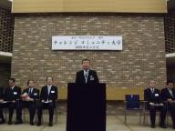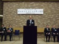 4月11日、チャレンジコミュニティ大学の2009年度入学式が行われ、第三期生60名が入学しました。 13:30から本学アートホールで行われた入学式では、チャレンジコミュニティ大学長である港区の武井雅昭 区長をはじめ、港区社会福祉協議会の川端庄造 会長や港区議会議員の方々などご来賓が、本学からも大西晴樹 学長や地域連携担当の川上和久 副学長ほか多数出席し、第三期生の入学を祝いました。 式では、入学生全員の紹介のあと、チャレンジコミュニティ大学長の武井雅昭 港区長より「港区と明治学院大学の連携事業の中核をなすこのチャレンジコミュニティ大学で、しっかりと学んでいただき、地域コミュニティでのリーダーとしての基礎知識を身に付けてもらいたい」との「式辞」がありました。その後、本学の大西 晴樹 学長より「祝辞」を、ご来賓の井筒 宣弘 港区議会議長より「来賓祝辞」をいただきました。 港区の委託事業である「チャレンジコミュニティ大学」は、港区内の高齢者や今後高齢を迎える方が、今まで培った知識・経験を地域に生かし、生きがいのある豊かな人生を創造し、また学習を通じて個々の能力を再開発し、地域のリーダーとなることを目的とした大学です。