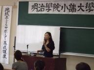 8月21日・22日、小諸市と本学との協働連携事業の一環として、「明治学院 小諸大学 子どもサポーター養成講座」を小諸市文化センターにて開催しました。 本講座は、昨年に引き続き、小諸市教育委員会の要請に応える形で実施され、本学心理学部の専任教員2名による集中講座形式により進行、小諸市の民生・児童委員の方々や、市内の教員・保育士の方など合計100名以上の参加がありました。 講座は大変好評で、「明治学院 小諸大学」の定期的な開催を望む声が多数あったようです。