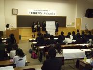 2009年10月24日(土)、本学白金校舎2号館におきまして、「模擬徹ロン College!」を開催いたしました。この事業は、昨年に引き続き明治学院大学法学部と東京青年会議所との協働連携事業という形で、実施いたしました。 「模擬徹ロン College!」とは、 ① 本学の大学生や系列校の高校生、他大学学生が集まり、その場で「政党」に見立てた小グループに分かれ、特定のテーマについてのマニフェストを作成し、 ② この模擬マニフェストを前提に参加者全員で討論、投票を行い、 ③ これらの過程の検証を通じて、実際の選挙制度、有権者の関心を引く要素、マニフェストの意義などを考えていくという「実践型政治参画教育」の試みのことです。 今回のテーマは「20代の投票率向上」。 ゲストとして、現職の国会議員の方々も3名参加し、高校生・大学生などと活発に討議を行いました。 本事業には、明治学院高等学校・明治学院東村山高等学校から合計52名の高校生も参加し、本学法学部生などの大学生と合わせて、総勢100名以上が共に議論を重ねました。 「模擬徹ロン College!」の企画・運営の主体は、本学法学部の学生実行委員であり、東京青年会議所の方々の助言と指導のもと、5カ月間という準備期間を費やして行われた画期的な事業であったため、マスコミ各社からも大きく注目されました。