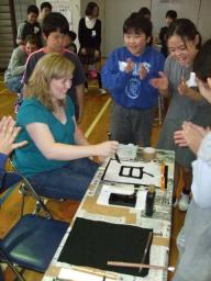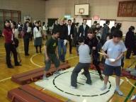 2009年11月6日午後、本学に留学中のISP(International Student Program)の外国人留学生17名(米、英、仏など8カ国)が、本学近隣の港区立白金小学校を訪ね、同校5年生の児童(103名)と交流会を行いました。 白金小学校では、全学年週2コマ「国際科」の授業で英語を学んでおり、「児童たちが授業で学んだ英語を活用する場をもちたい」という趣旨のもと、今年4月にも本学留学生と小学校3年生との交流会を行い、今回は2回目となります。 この日は、港区教育委員会研究奨励校である白金小学校の「国際科」の研究発表会でもあり、全国の小学校教諭たち100名以上が、この交流会を視察しました。 テーマは、「日本の伝統文化を伝えよう」。 交流会は、白金小学校5年生のみなさんが、日本の琴・相撲・茶道・書道などの伝統文化を留学生たちに紹介する、という形で行われました。 体育館を会場に、グループに分かれた小学生が、それぞれの伝統文化紹介のブースを用意。本学留学生が、それぞれを体験して回る、という形で会は進行しました。 小学生たちは、知っている英語や身振り手振りを駆使し、積極的に留学生に伝統文化を教え、留学生たちも本気で楽しんでいたようです。 今回の交流会は、本学留学生と白金小学校児童との交流のみならず、小学校における英語教育の本格的な実施に向けて、全国の小学校教諭の研究材料としても、大きく貢献できたと考えます。