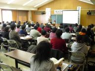 1月30日、小諸市と本学との協働連携事業の一環として、「明治学院 小諸大学 子どもサポーター養成講座」第3回(=最終回)を小諸市コミュニティセンターにて開催しました。 本講座は、昨年8月に本学心理学部の杉山恵理子 教授、田村節子 准教授により、第1回・第2回を実施。小諸市の民生・児童委員の方々や、市内の教員・保育士の方など合計100名以上の参加があり、好評を博しました。 今回は、2009年度の最終回という形で行われ、同じく心理学部の金子 健 教授が「親の思い・教師の思い・専門家の思い」をテーマに講師を務め、特別支援教育に携わる方々を中心に市内教員・保育士など63名の参加がありました。 講座は、2時間の講義と、1時間半の座談会との2部形式で行われました。座談会では、講義の内容を踏まえ、金子教授を中心に熱い議論が行われました。 明治学院小諸大学は、2010年度も継続して開催する予定です。