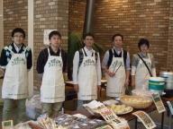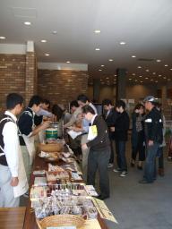 2010年度白金祭におきまして、11月2日・3日、長野県小諸市の方々による「信州小諸、観光案内と特産品販売」を行いました。 当日は、小諸市職員の方々5名に来ていただき、特産品であるりんご・白イモ・じゃがバター等の試食・販売と、小諸市の観光案内を行いました。 お店は、今年も大変好評で、とくに信州名物の「おやき」、白イモで作る「じゃがバター」も行列ができるほどでした。 毎年完売するものが続出するので、今年は量も品数も、かなり多めに用意をしていたのですが、結局2日目の2時半過ぎにはほぼ完売状態となってしまいました。 今年4回目を迎える小諸市の出店も、リピーターが増えたようで「今年もまた買いに来ました」との声が多く聞こえていたようです。