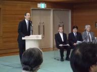4月9日(土)、チャレンジコミュニティ大学の2011年度入学式が行われ、第5期生60名が入学しました。 13:30から、港区役所本庁舎大会議室で行われた入学式では、港区議会議員の方々や、港区社会福祉協議会 会長などのご来賓が、本学からも地域連携担当の川上和久 副学長ほか多数出席し、第5期生の入学を祝いました。 式典では、チャレンジコミュニティ大学長の武井雅昭 港区長からの「式辞」の後、本学の川上 和久 副学長より「祝辞」を、ご来賓の達下 マサ子 港区議会副議長より「来賓祝辞」をいただきました。 港区の委託事業である「チャレンジコミュニティ大学」は、港区内の高齢者や今後高齢を迎える方が、今まで培った知識・経験を地域に生かし、生きがいのある豊かな人生を創造し、また学習を通じて個々の能力を再開発し、地域のリーダーとなることを目的とした大学です。4月13日からは、いよいよ講義が始まります。