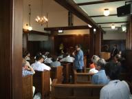 次に日本基督教団高輪教会(1933年竣工)を見学しました。高輪教会はその前身を高輪台町教会と言い、当時、本学院生であった島崎藤村が洗礼を受けた教会でもあります。