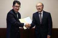 調印式は白金キャンパスで横浜女学院中学校高等学校の平間宏一学校長と明治学院大学の鵜殿博喜学長らが出席して執り行われました。