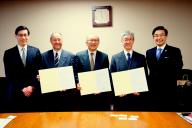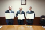 調印式は白金キャンパスで、遺愛女子高等学校の福島基輝学校長と梅光学院高等学校の近藤泰雄校長が一緒に出席され、本学の鵜殿博喜学長と協定の取り交わしを行いました。