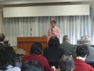 研修会では、1日目現地到着後、簡単なオリエンテーションのあと、講師の牧岡英夫先生による「地域課題発見の方法 地域組織化と地域リーダーの役割 - 街の中で活動しながら、私の気づいたこと考えたこと -」と題した、熱のこもった講義が行われました。
