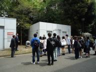 また引き続き、キャンパス内に建てられている「動物実験の碑」の前に場所を移動し、この碑についての説明ののち、担当教員と履修者全員にて命の尊さを覚えつつ黙祷を捧げました。