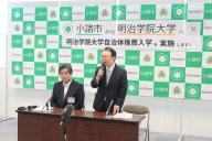 2017年6月29日(木)、「明治学院大学 自治体推薦入学試験」について、小諸市の小泉俊博 市長と本学の松原康雄 学長が、小諸市役所で共同記者会見を行いました。