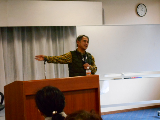 研修会では、1日目現地到着後、簡単なオリエンテーションのあと、講師の牧岡英夫先生による「地域課題発見の方法 地域組織化と地域リーダーの役割 - 街の中で活動しながら、気づいたこと・考えたこと -」と題した、熱のこもった講義が行われました。