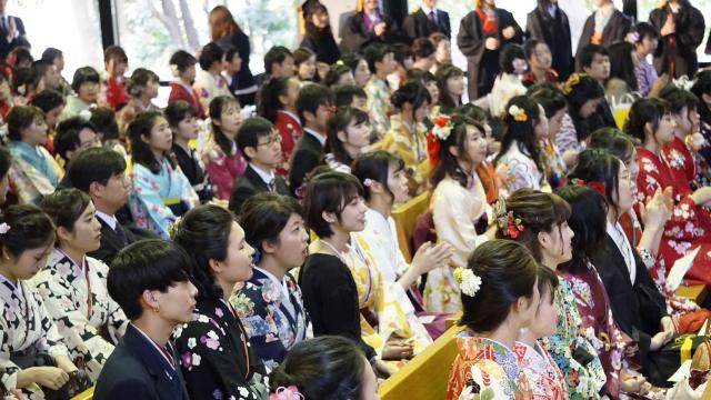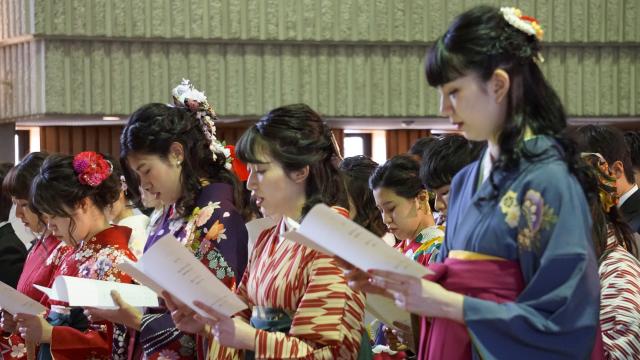 後輩や同級生、教職員との別れを惜しみつつ、卒業・修了の証である学位記を受け取りました。