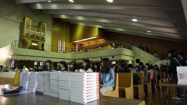 横浜キャンパスでは多くの学生たちが参加し、立ち見が出るほどの盛況ぶり。