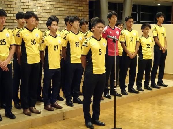 8月20日、総理大臣杯全日本大学サッカートーナメント(8月31日開幕)に出場する体育会サッカー部の壮行会が白金キャンパスで行われました。