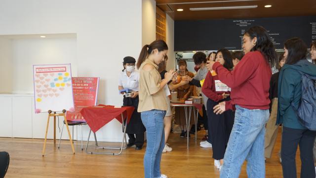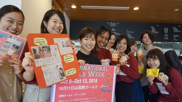 そう語る田口慈江さん(法学部政治学科2年)。10月8日(月)から12日(金)まで開催中の明学国際ガールズ・ウィークの企画のリーダーを務めています。10月11日(木)は「女の子の権利」や「女の子のエンパワーメント」の促進を広く国際社会に呼びかける日、「国際ガールズ・デー」。国連が定める国際デーの一つで、世界各地で女の子自らが声を上げ、彼女たちを応援する活動が行われます。今回の目玉企画はピンクレモネード(\150※税込)の販売。