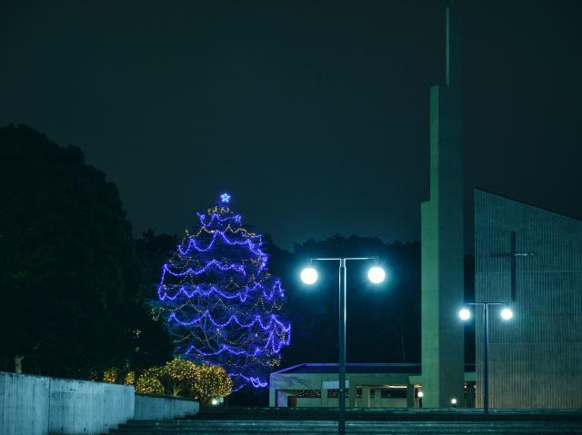 朝晩の冷え込みが冬を感じさせる横浜キャンパス。11月27日(金)からクリスマスイルミネーションの点灯が始まりました。鮮やかなブルーのヒマラヤ杉、暖かなオレンジの沿道。それぞれの優しい光がキャンパスを包みます。クリスマスツリーは、下記期間に点灯します。2020年11月27日(金)~2021年1月6日(水) 16:30~21:00