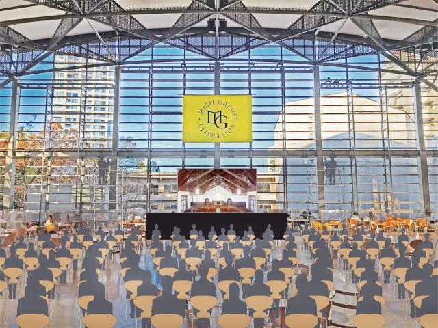 中継会場での参加者および欠席者・保証人は、チャペルでの式典の様子をライブ映像でご覧いただけます。