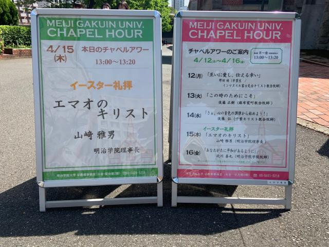 4月15日(木)昼休み、横浜チャペル、白金チャペルで新入生歓迎イースター礼拝を行いました。イースターは、十字架にかけられ処刑されたイエス・キリストの復活を祝う、キリスト教にとって大切な節目。白金、横浜キャンパスでは、毎年この時期にイースター礼拝を行っています。