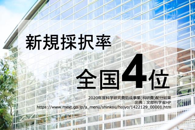2020年度科学研究費助成事業(科研費)における配分結果で、本学の新規採択率は全国で第4位(46.4%)、私立大学では全国第1位となりました。