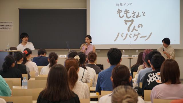 8月20日(土)にNHKで放送される特集ドラマ「ももさんと7人のパパゲーノ」。本番組に出演される山崎 紘菜さん、監督の後藤 怜亜さんと番組プロデューサーの倉崎 憲さんが登壇し、明学生を前に講演会を開催しました。