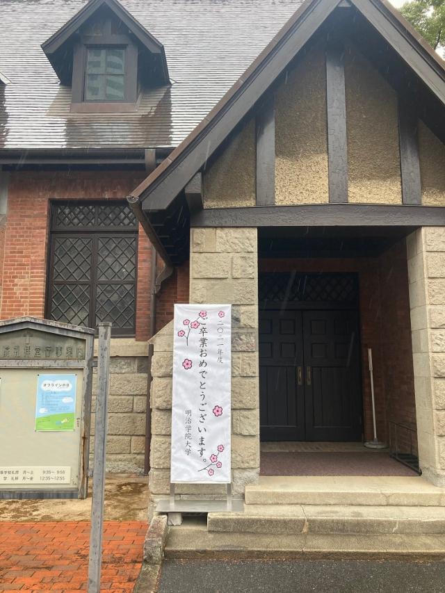 ※3月10日(木)・3月11日(金)は高等学校の卒業式準備と実施のため、白金キャンパスのチャペルの看板は一時的に撤去し、