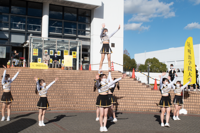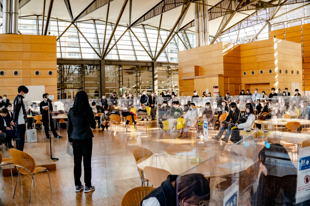 応援のメッセージの後、応援団の演舞が披露され、集まった学生・教職員とともに心からのエールを送りました。