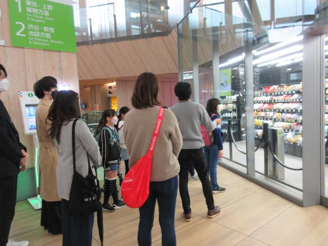 高輪ゲートウェイ駅の見学では、JR東日本のスタッフから無人自動化された駅構内のコンビニエンスストアの紹介や、駅周辺の今後の街づくり構想の説明などがあり、児童は自分たちの暮らす街の変化に興味津々な様子。