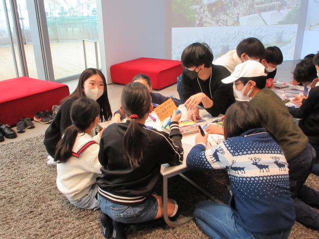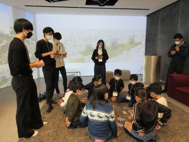 本学学生4名が「高輪ゲートウェイ駅見学&高輪地域のオリジナルカルタ作りワークショップ」のプログラムを企画考案し、当日は高輪児童館に通う小学校3年生~6年生の児童9名が参加しました。