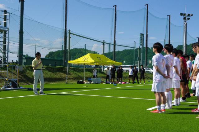 試合開始に先立ち、村田学長からの開会挨拶のあと、北川学院牧師とともに整備完了に感謝するお祈りをしました。暑さに負けない白熱した試合は後半戦で両者得点し、1対1の引き分けとなりました。