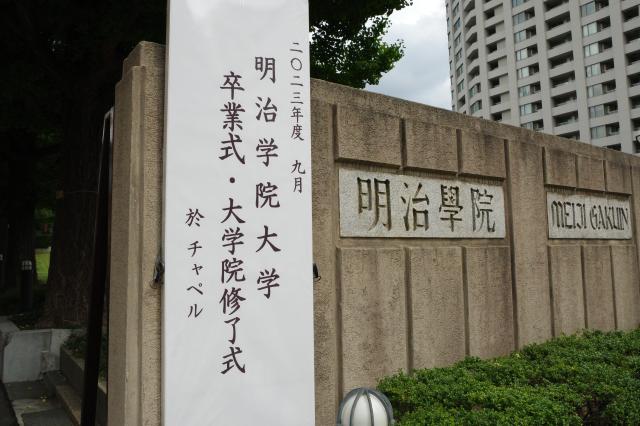 9月15日(金)、白金キャンパスで卒業式・修了式を執り行いました。学生・院生たちは、学長、学院長の式辞・祝辞などに真剣な面持ちで耳を傾けていました。その後、卒業・修了の証である学位記を受け取り、キャンパスは笑顔で満たされました。学生からは「明治学院大学で充実した学生生活を送れました」という声が寄せられました。今後は学生生活の出会いと経験を生かし、一人ひとりが心新たに新生活に臨みます。ご卒業おめでとうございます!