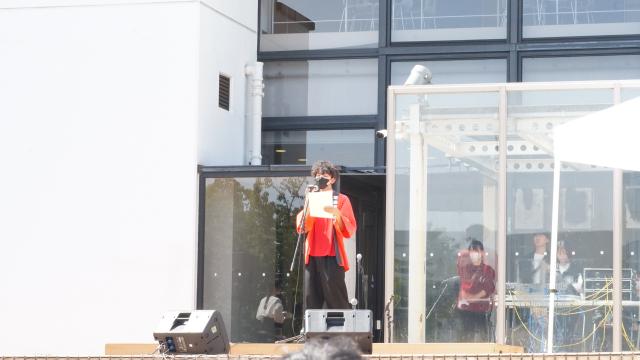 戸塚まつり準備会代表の秋葉凛太郎さん(社会学科3年)の挨拶をはじめ、國本直哉戸塚区長や藤井雅喜上倉田地区連合会長にもお越しいただき、4年ぶりの対面開催を祝福する和やかなムードに包まれました。
