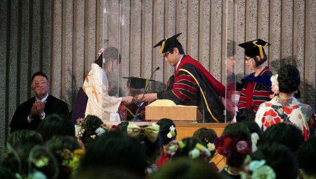 今年の卒業式・修了式は、両キャンパスのチャペルで実施し、保証人やご家族の皆様には別会場からライブ中継にて式の様子をお届けしました。