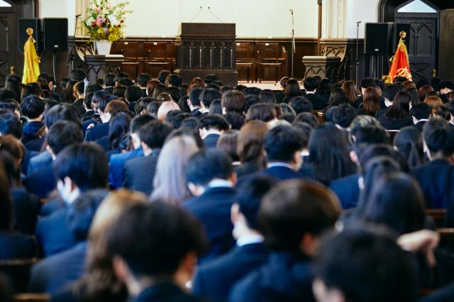 4月1日(土)、3日(月)の2日間、白金、横浜キャンパスで入学式を執り行いました。今年の入学式は、両キャンパスのチャペルで実施し、保証人やご家族の皆様は保証人会場からライブ中継にて式の様子を見守りました。満開の桜と青空のもと、期待と緊張の表情で入学式に臨む新入生たち。これから学生生活を共に過ごす友人や先生、先輩との出会いもあり、両キャンパスは多くの笑顔で満たされました。皆さん、ご入学おめでとうございます。※村田玲音学長、鵜殿博喜学院長からの入学式のメッセージはこちらをご覧ください。