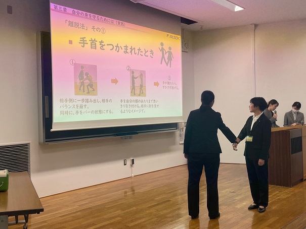 イベント週間は、ALSOK(綜合警備保障株式会社)による若い女性向けの防犯セミナーから始まりました。講演者によって、女子学生が安全な生活を促進し、特に留守中の潜在的なリスクを回避するための、豊富な実践的アドバイスを提供されました。セミナーの最後には、全ての出席者にとって有益な、護身術のデモンストレーションが行われました。