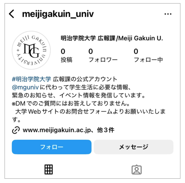 今後、@meijigakuin_univ を通して大学にまつわるさまざまな情報を発信して参ります。
