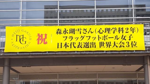 心理学科2年生の森永瑚雪さんが、フラッグフットボールの女子日本代表に選出されました。