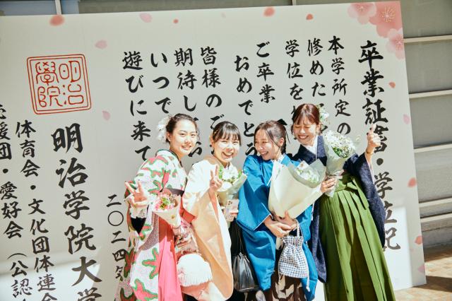 卒業生の皆様に、キャンパス内での記念撮影に関するお知らせです。卒業式当日に、皆さま向けの撮影スポットを設置、チェキ企画も実施します。1.卒業式当日に撮影可能なスポット卒業証書パネル、ヘボン像横つぼ花は当日限定のスポットです。キャンパス内でのさまざまな装飾をお楽しみください。