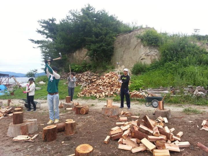 明治学院大学の薪プロジェクトでは、NPO吉里吉里国が行っている薪の生産や森林の間伐作業のお手伝いをしています。今回も、8月9日から8月11日までの3日間滞在し、薪割りや森林内での枝の収集作業のお手伝いをしました。