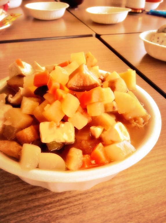 閉会後は、学生がつくった郷土料理、「こまこま汁」と「木登り団子」を提供しました。