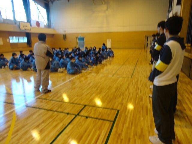6時間目終了後には中学生全学年と交流するお時間をいただき、アイスブレイクとして無言で誕生日順に1列に並ぶというゲームなど行いました。体育館を使用してという形であり、とても寒い中で体を動かすようなゲーム内容にしなかったことが反省点として挙げられます。ただ、全学年の中学生が一同に揃う場はあまり見ることがなく授業サポートに入っているだけでは見られなかった、中学生の先輩・後輩の関係を垣間見ることができたので、新たな一面を知ることにつながりました。また、活動初日での交流は翌日以降の活動に活きるものとなりました。(1年 川崎)